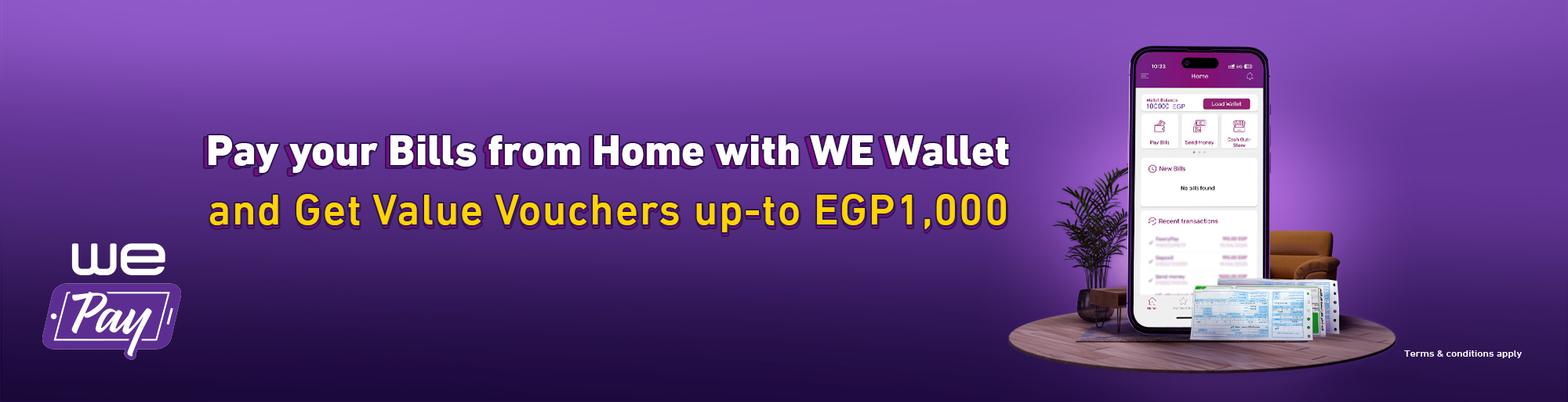 - The minimum value of transactions on WE Pay is EGP100 to be able to subscribe to the vouchers offer.
