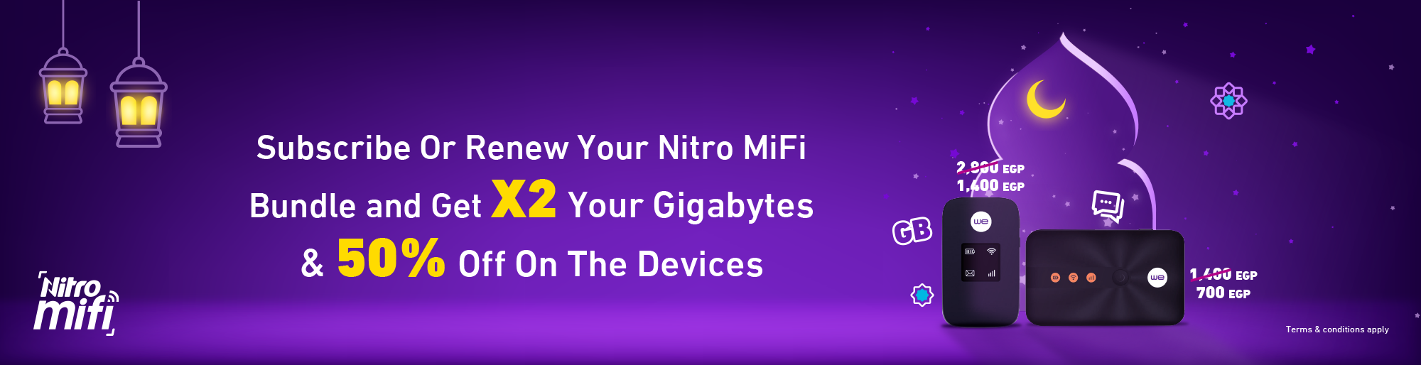 Subscribe or renew your Nitro MiFi bundles and get double your bundle, in addition to a 50% discount on MiFi devices.